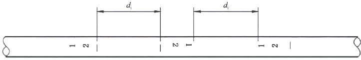 6.2.2 부호가 단일 숫자로 구성되는 경우 숫자 아래에 수평선을 추가한다. 부호가 2개의 숫자로 구성되는 경우에는 수직으로 배열하고 후자의 숫자 아래에 수평선을 추가한다. 인접한 두 숫자 그룹 사이의 간격 di는 50mm를 초과할 수 없습니다. 디지털 식별 표시의 배열은 아래 그림과 같습니다.